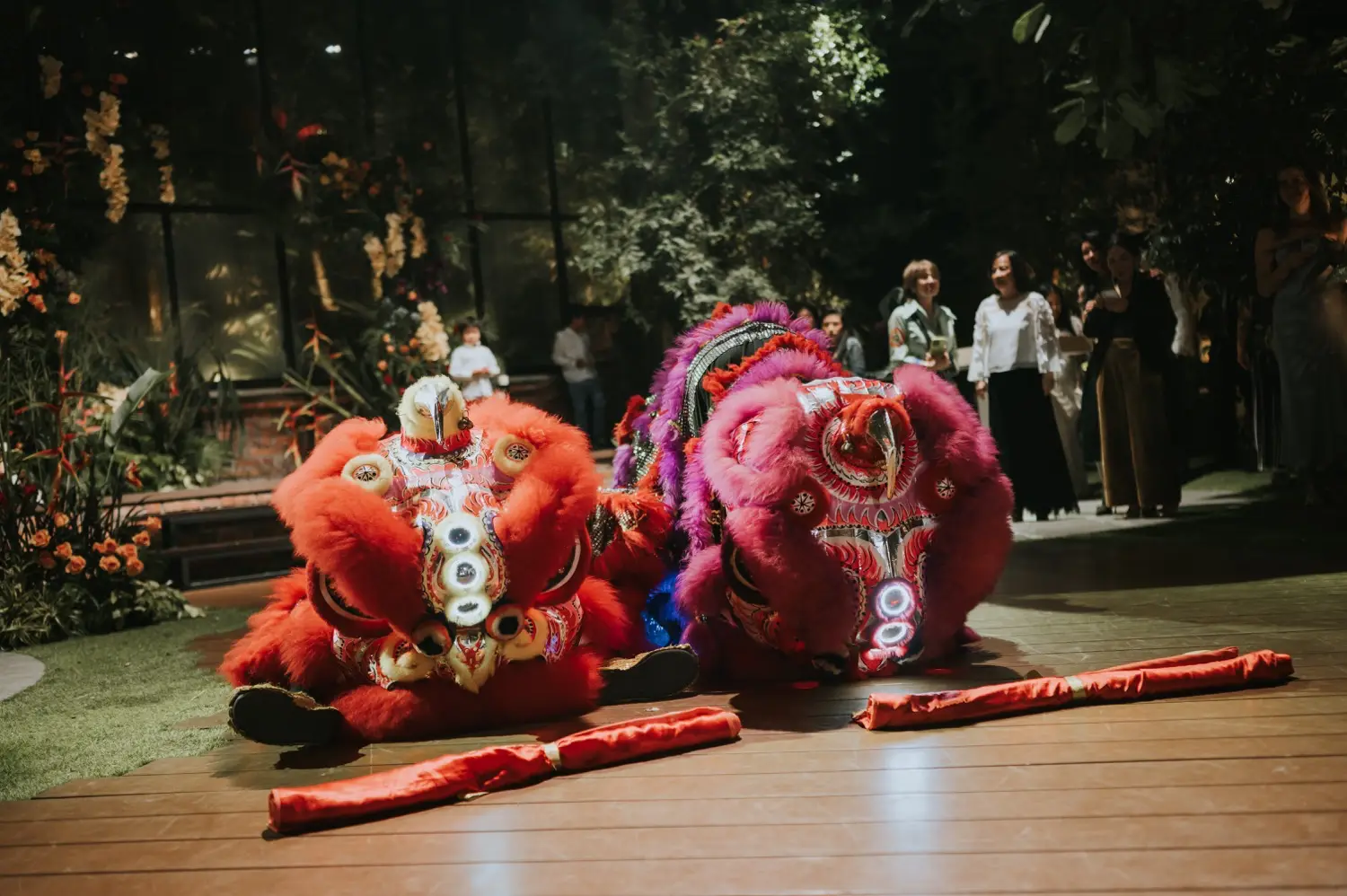 Another unique and playful addition to their celebration was a vibrant Lion Dance performance, accompanied with an appearance of a cheeky God of Wealth, infusing the festivities with cultural significance and festive spirit! Tim's two nephews, brimming with enthusiasm, joined the lion dance troupe, adding an adorable touch to the traditional spectacle.